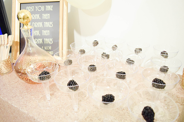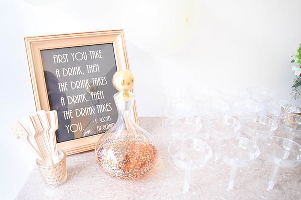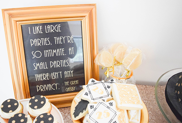 I had prints made with quotes from The Great Gatsby or writers from that time and displayed them around the room. This is one of my favorite lines from the movie. PS those lollipops are also vanilla vodka infused.. I know.. find the recipe