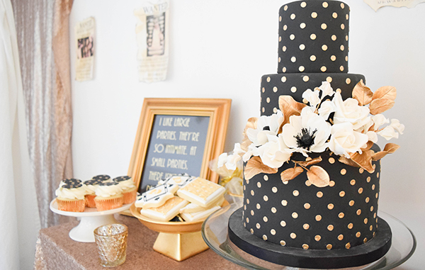 This black and gold polka dot cake by