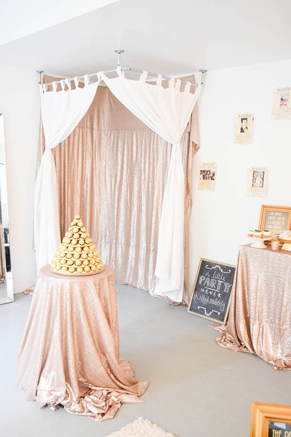 I created our very own Photo Booth by hanging a sequin tablecloth and curtains - everyone loved this! My sister brought her selfie stick along so needless to say we got some pretty interesting group shots!
