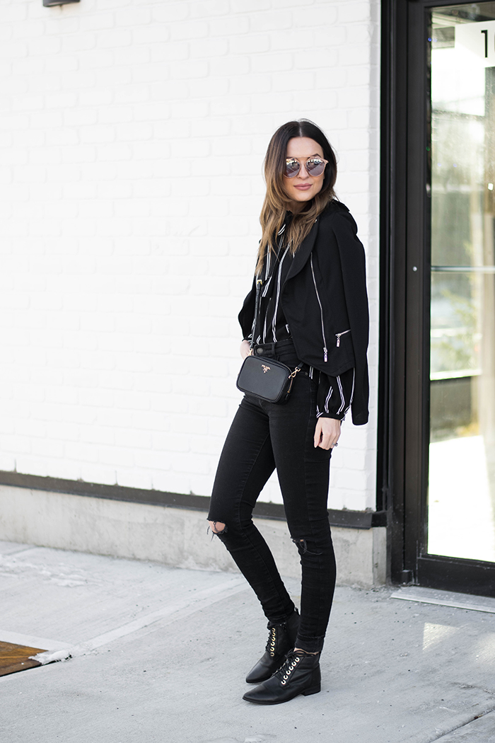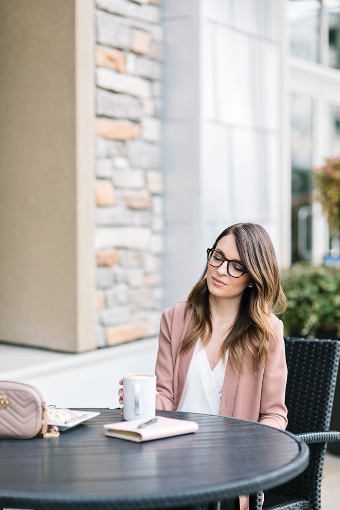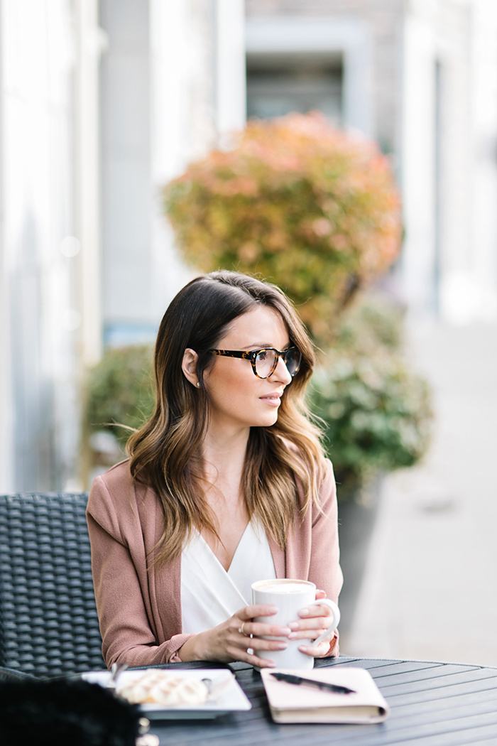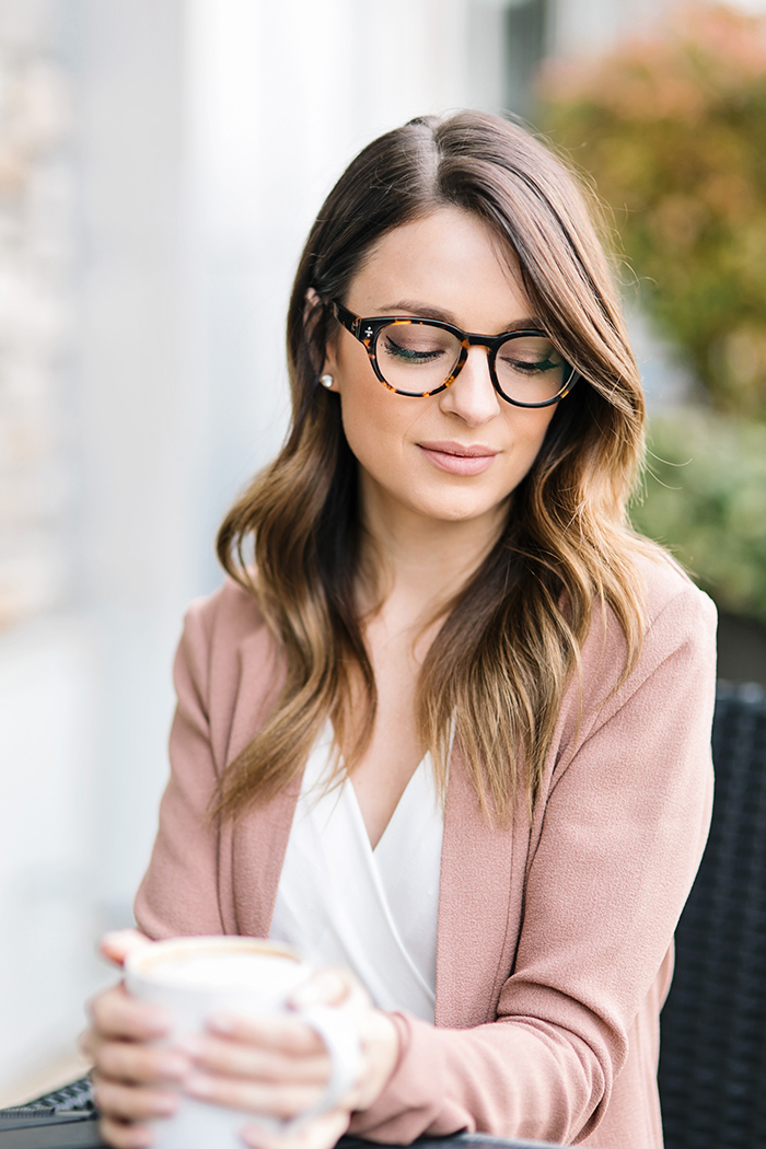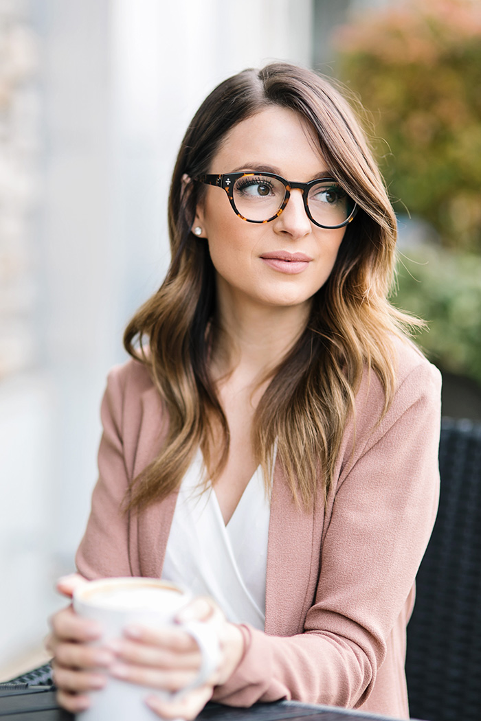 Being in fashion, I love options. What I love about clearly.ca is that they supply gorgeous eyeglass options for a fraction of the price which makes it simple for anyone to be able to switch up their look with their outfit / setting! I embrace the fact that my eyes aren’t perfect because it’s so fun being able to pick and choose my specs with my look - when I’m feeling a little more casual and relaxed, I opt for an easy plastic tortoise frame, when I’m feeling playful, I switch it up to a petal pink frame, and when I’m feeling a little more trendy and edgy I opt for a round gold metal frame.