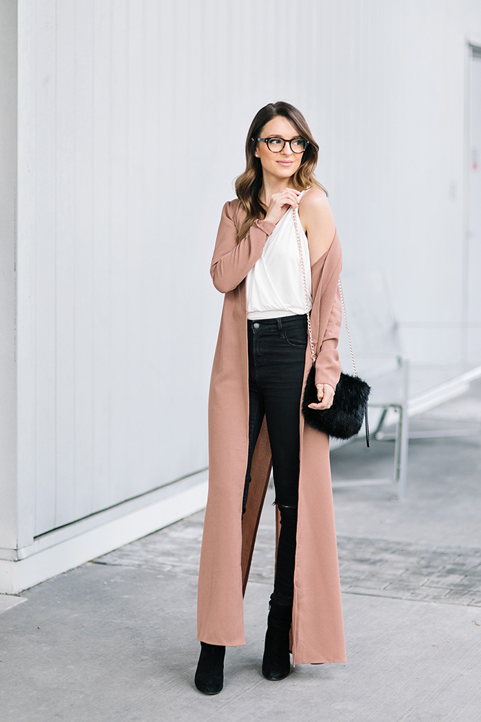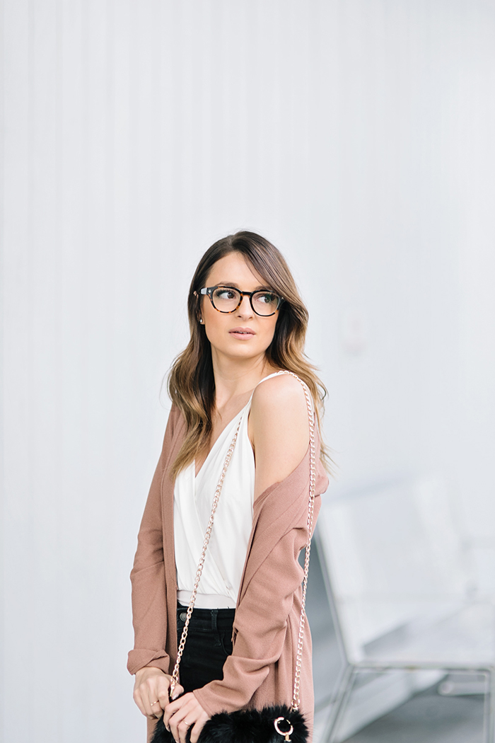 Glasses: c/o Clearly.ca | Cardi: c/o Windsor | Bodysuit: Boohoo | Jeans: similar | Bag: c/o Windsor