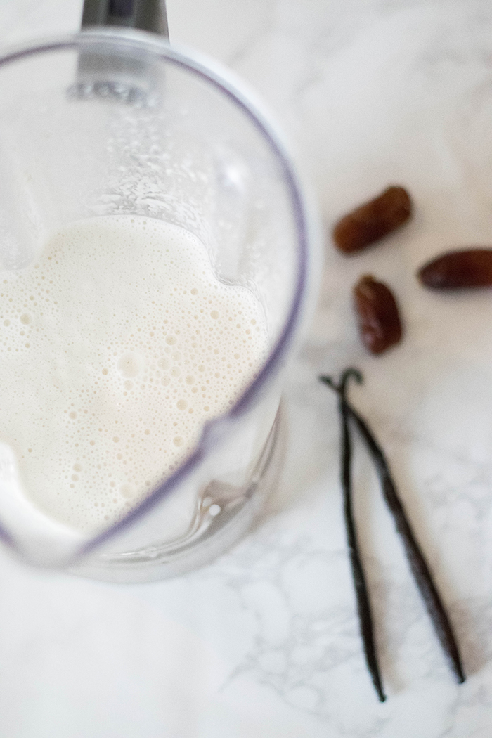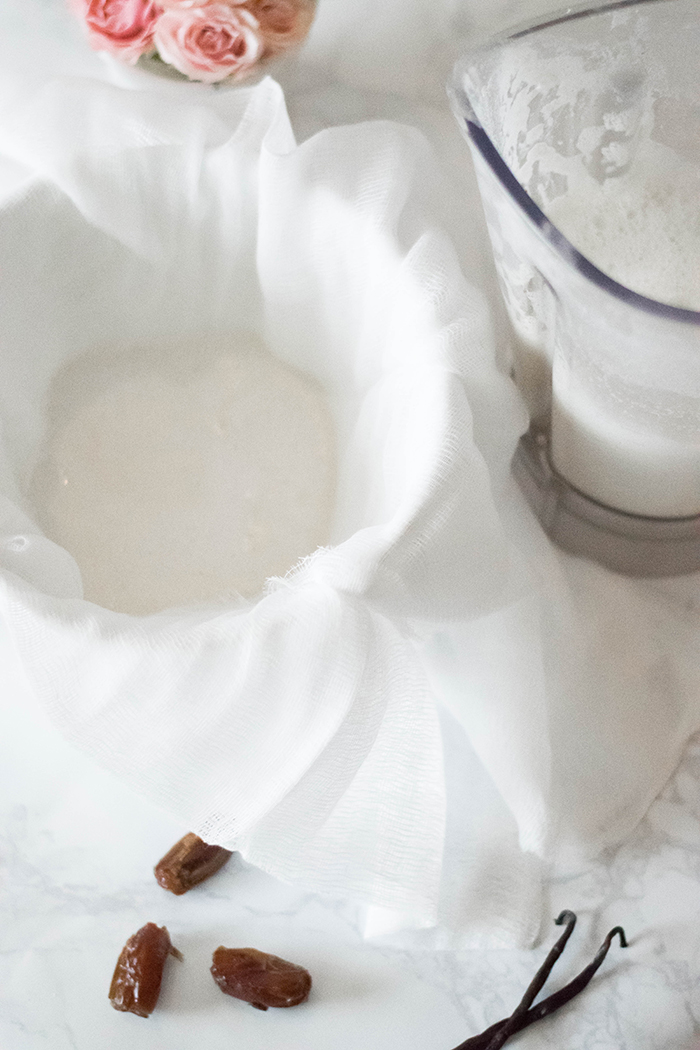Begin by soaking the cashews anywhere from 4 hours, up to overnight in the fridge (I chose to do overnight). Drain the cashews and rinse until the water runs clear. Pop the drained cashews into the blender and add dates and two cups of water - blend until pureed (around two minutes). Add vanilla, sea salt, and however much water you prefer (I added an additional 3 cups). Blend for an additional 1-2 minutes. Strain the mixture through a cheesecloth to remove any remaining pulp and THAT'S IT!