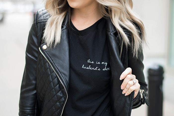 New MACCS the label tees have arrived and I am SO excited! These tees are a unisex fit so they're nice and loose, and they're also super soft. We really wanted to make something for bridal season but didn't want it to be anything too cheesy or bridal - we wanted something brides wouldn't be afraid to wear long after their 'I do's' which is why we created this super chic and cozy 'This is my husband's shirt' tee which comes in both white and black. I am the number one offender of stealing Danny's tees all the time because they are way more cozy than mine and I love wearing them with some great denim. We also created this fun rosé all day tee which is a Spring staple - I love the sort of 'thank you' bag design we went with.