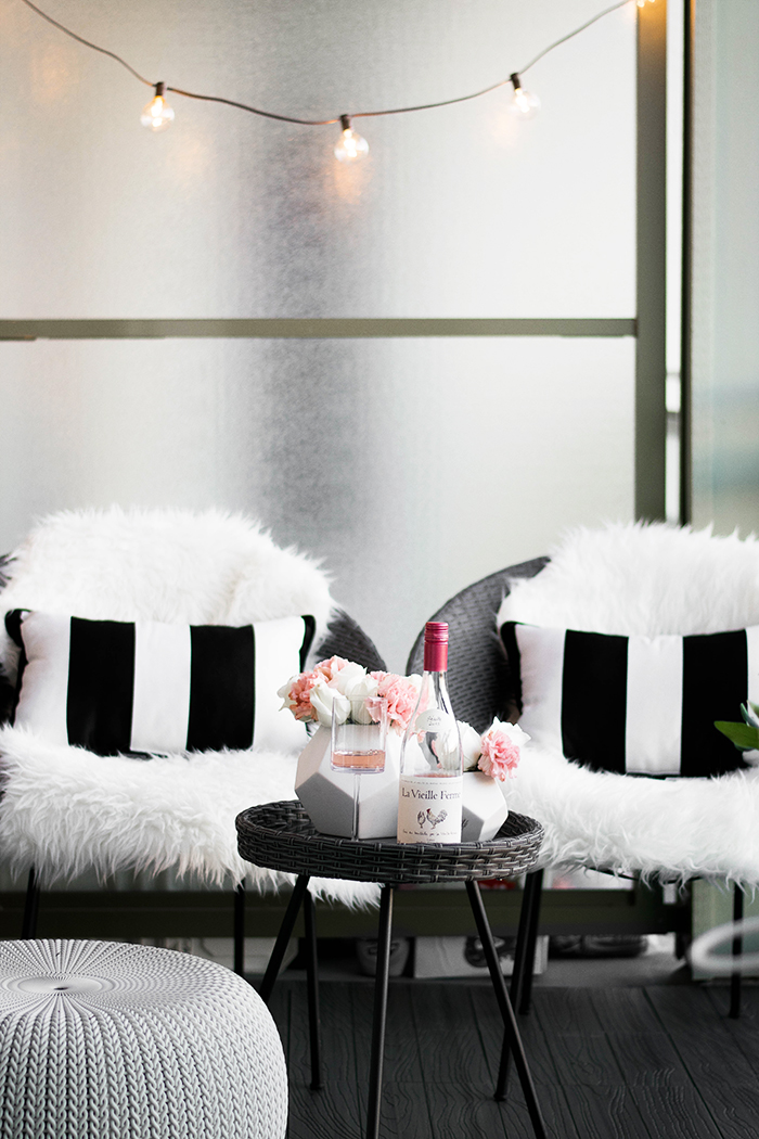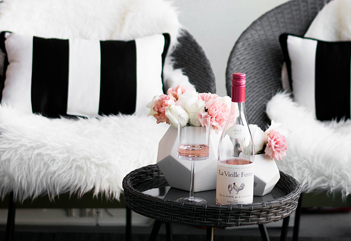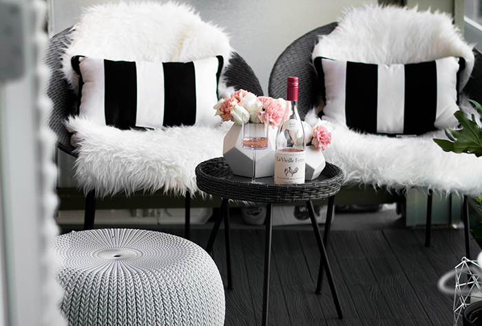 These round wicker chairs are so adorable and add the perfect touch of modern chic to your space. I also picked up these gorgeous black and white striped lumbar pillows that are giving me some serious Vegas cabana vibes.