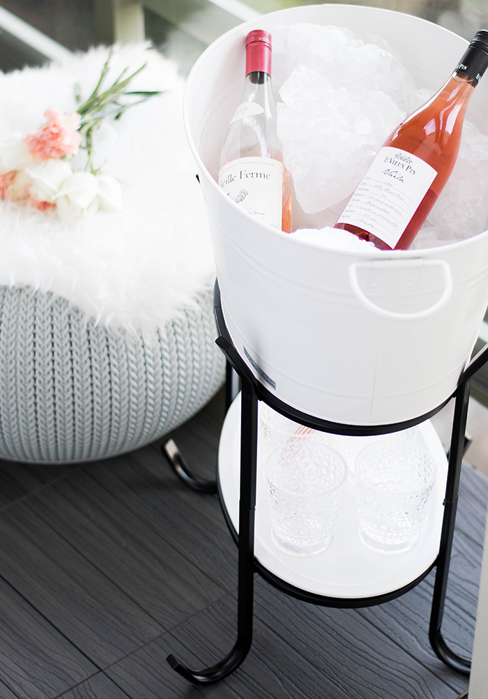 I think my favorite patio accent is this party tub - perfect for chilling all the rosé and it has an adorable little storage space below for gorgeous glasses and drink mixing necessities.