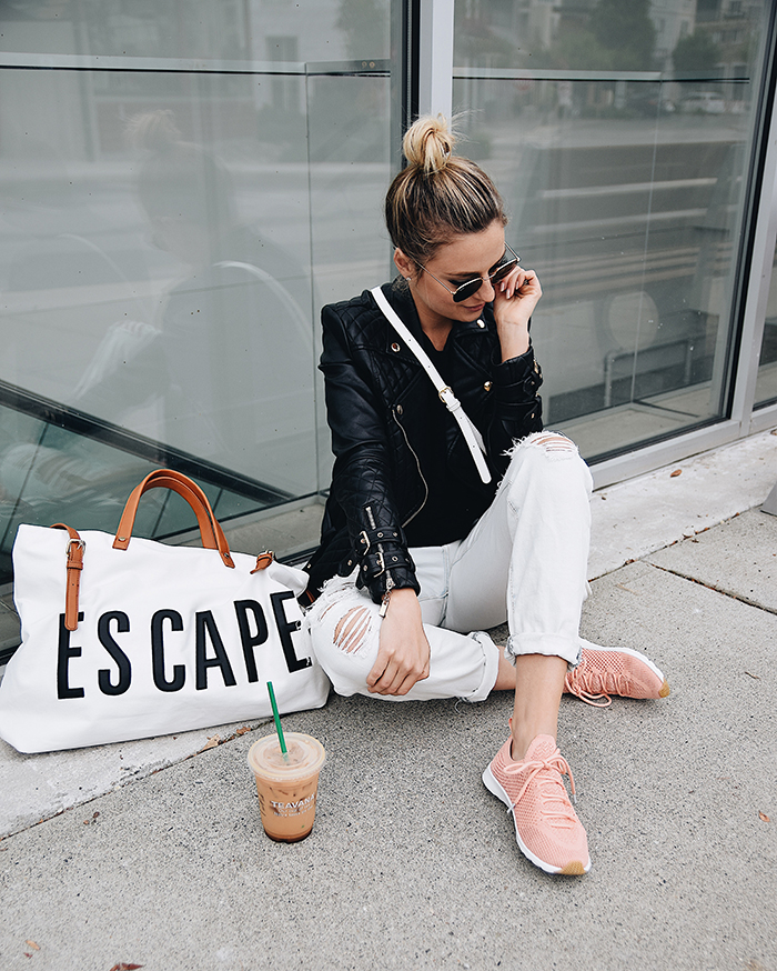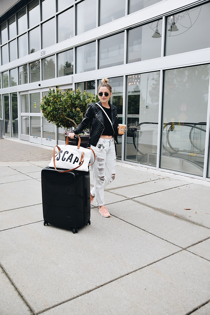 Whenever Danny and I head on vacation, a comfy airport look is always a must. We have always been huge vans of Native and find they really are the best shoes for travelling, as I've mentioned before here. We recently picked up a couple new pairs for our vacation and I am in love with their new clay pink colour options, which I'm wearing above! I wore my natives yesterday for a grand total of 9 hours travelling to get to Mexico and they were a dream - super lightweight and breathable. They're also nice and lite so they won't weigh your luggage down after. I also packed the Jeffersons which will be perfect for exploring Mexico in!