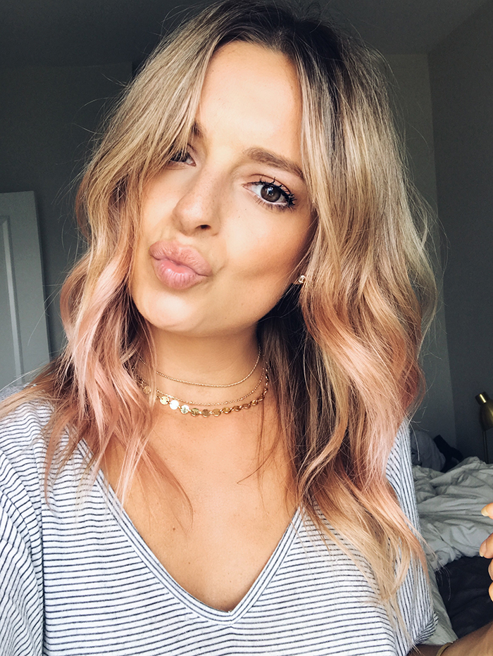These are tape-in extensions. There are quite a few different kinds of extensions but tape-ins are supposed to be the best option and allow for no damage to the natural hair. I had always heard of tape-in extensions, but I never realized that they were straight up TAPED IN. It was bizarre to find that out! They legit peel the hair off a sticker and tape it into your head! Having the hair on a strip allows the stress of brushing/pulling to be on a long strip of hair vs. say when you get clamped in hair extensions where it's clamped to such a small section you can risk pulling it right out.