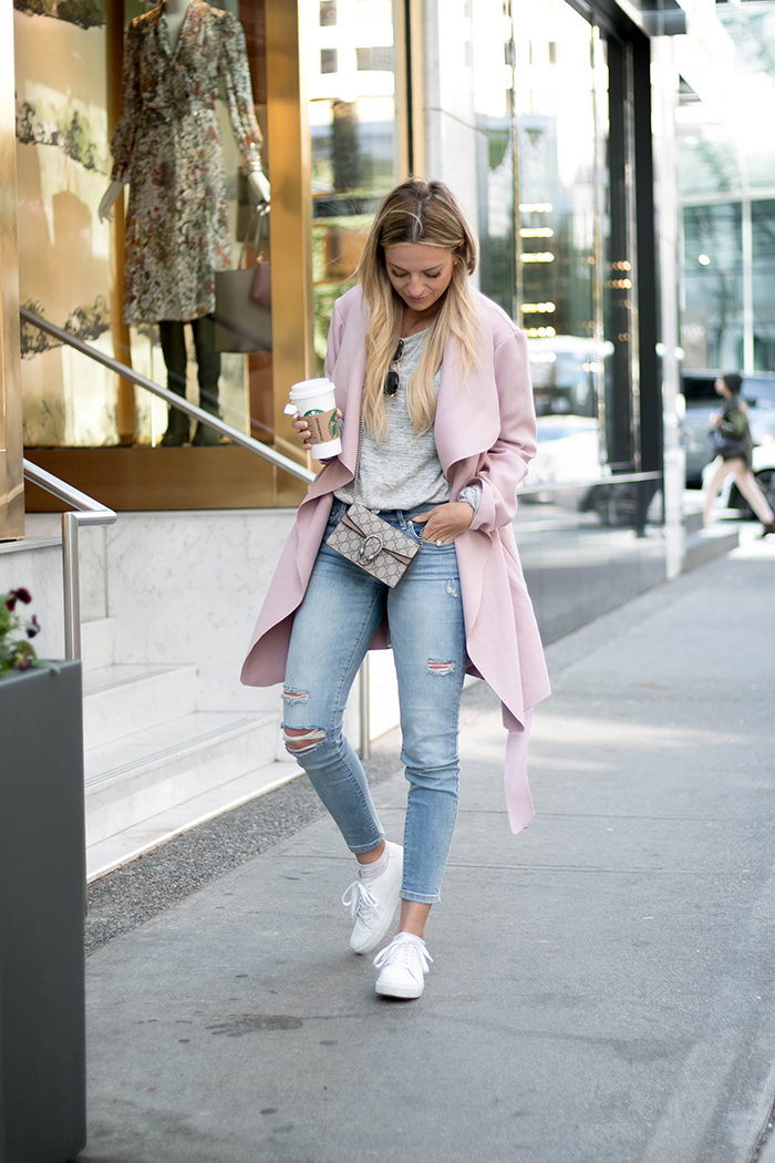 Well it seems as though I blinked and Fall is in full swing! Time seriously flies! I think I say this every year but Fall is my favourite time of year for fashion - there's nothing like cozy layers. I have been loving this wrap coat from Le Château for my everyday wear - super comfy and in the most gorgeous shade of blush. I can also take this right into winter with a heavier coat overtop and a great toque.